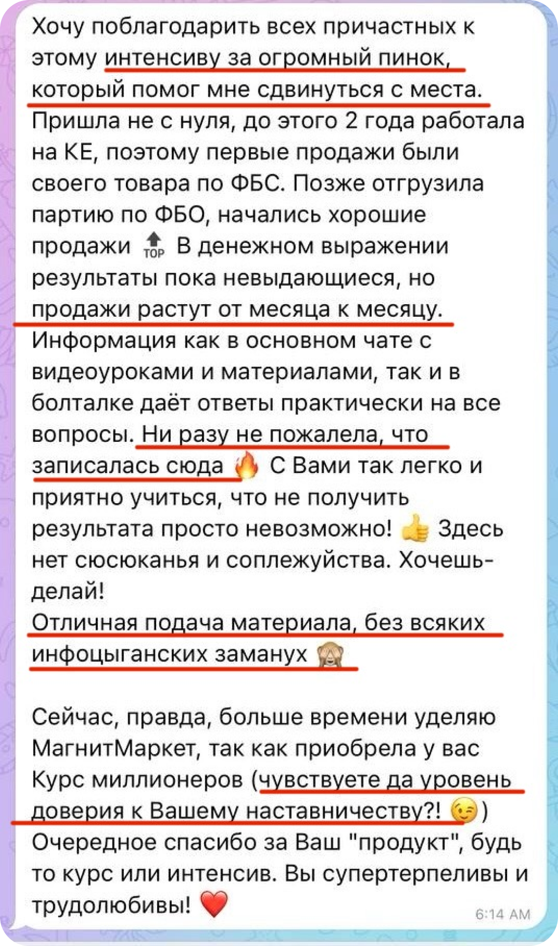 Вы получаете доступ к 10 обучающим урокам утром 14 сентября. Все уроки загружены на удобной платформе. Вам нужно просто запустить видео и повторять пошагово. Всё очень просто.